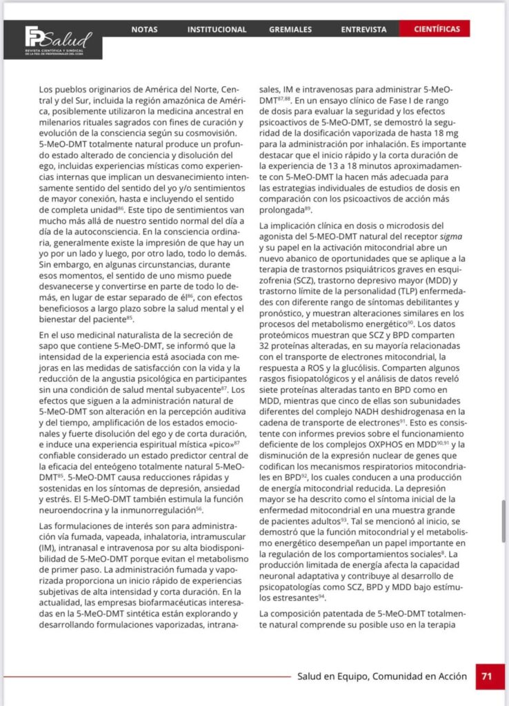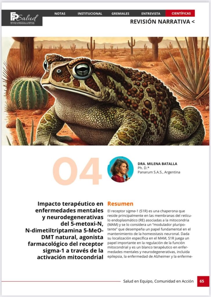 Doctora Milena Batalla y ensayo clínico con Bufo Alvarius y Ayahuasca Argentina Uruguay: Recientemente a publicado un artículo en la prestigiosa revista FP SALUD donde hace una revisión científica sobre las evidencias incontestables que tiene esta medicina para la salud psicoemocional y espiritual, el tratamiento de los trastornos mentales, las enfermedades neurodegenerativas e incluso los cambios epigenéticos favorables en nuestros genes.